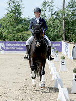 Siegreich in Dressurpferde L war auch JOKER BD (v. Jovian - Don Frederico) unter Nadine Funke. Darüber hinaus sicherte er seiner Reiterin noch Platz 3 in einer weiteren Dressurpferde L und erstmalig auf Kandarre Platz 5 in L. Nach drei sehr gelungen Fohlen präsentierte Leonie die jetzt 7jährige IDA BD (von Asgard's Ibiza - Don Frederico) erstmals auf einem Turnier. Mit Platz 3 und Platz 4 in Dressurpferdeprüfungen der Klasse L hinterließ die typvolle Fuchsstute auf Anhieb einen überzeugenden Eindruck. Zwei 5. Plätze im Grand Prix steuerte CRICKET BD (v. Charmeur - Don Frederico) seiner beeindruckenden Turnierbilanz hinzu.